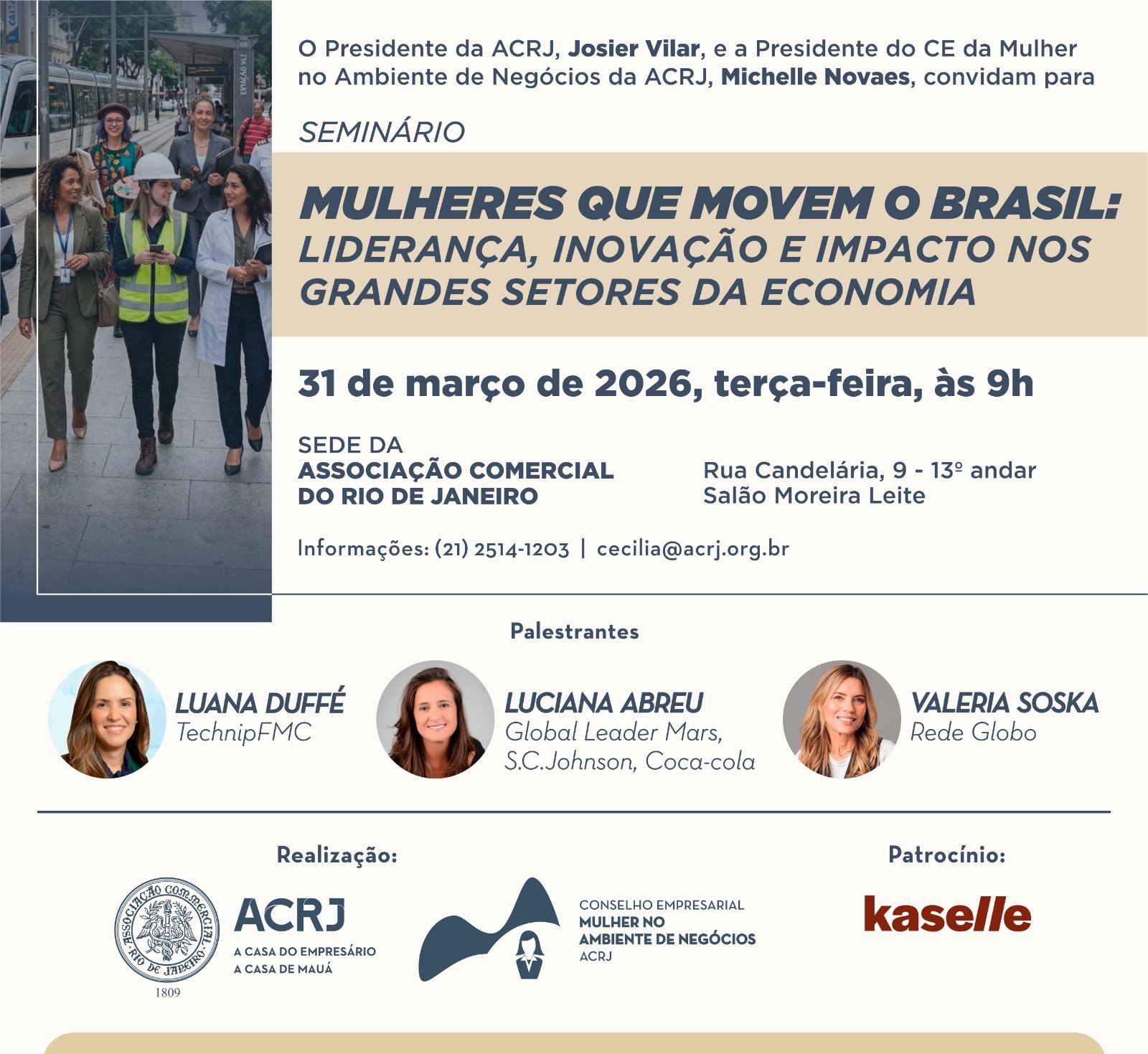 O Conselho Empresarial da Mulher no Ambiente de Negócios da ACRJ promoverá o Seminário “Mulheres que Movem o Brasil: Liderança, Inovação e Impacto nos Grandes Setores da Economia”. O objetivo