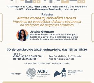 O Conselho Empresarial de Segurança da ACRJ promove dia 30/10, às 16h, a palestra sobre geopolítica, segurança e defesa com a especialista Jessica Germano. 🆓