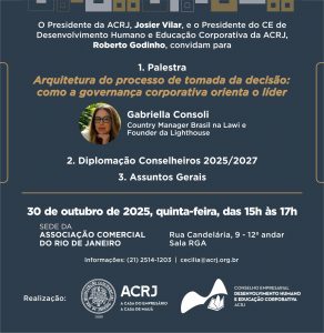 O Conselho Empresarial de Desenvolvimento Humano e Educação Corporativa da ACRJ convida para a palestra sobre tomada de decisão e governança corporativa com a especialista