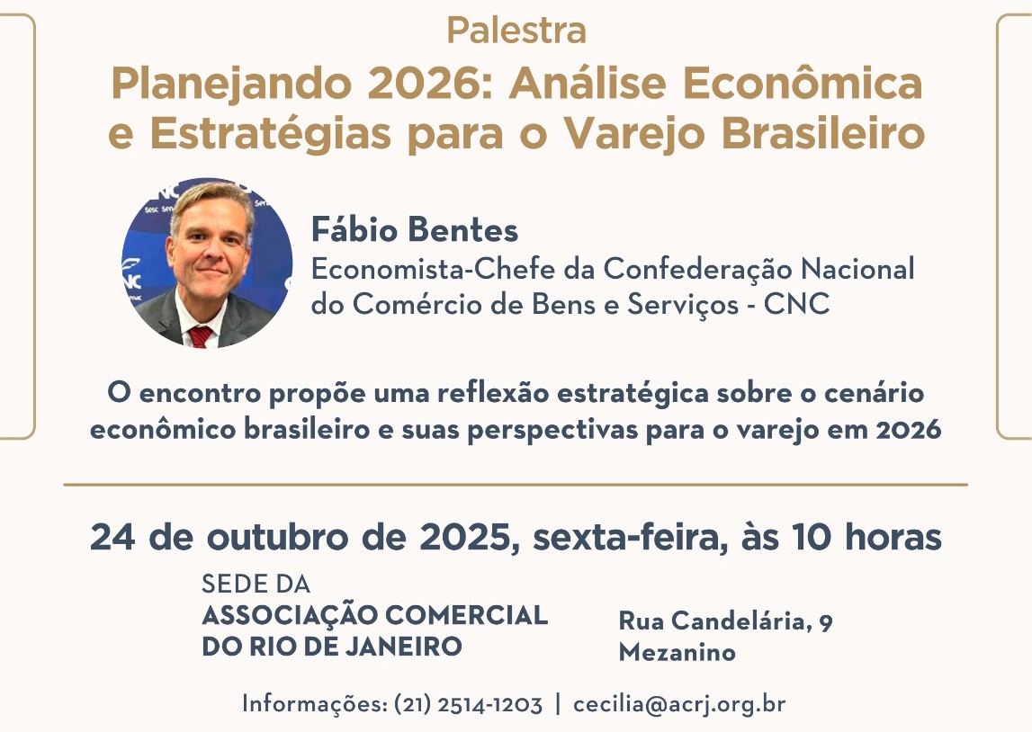 O economista-chefe da CNC (Confederação Nacional do Comércio de Bens e Serviços), Fábio Bentes, é o convidado da reunião conjunta dos Conselhos Empresariais de Varejo, Desenvolvimento Econômico e Mercado de Capitais e Empreendedorismo e da Pequena e Média Empresa.