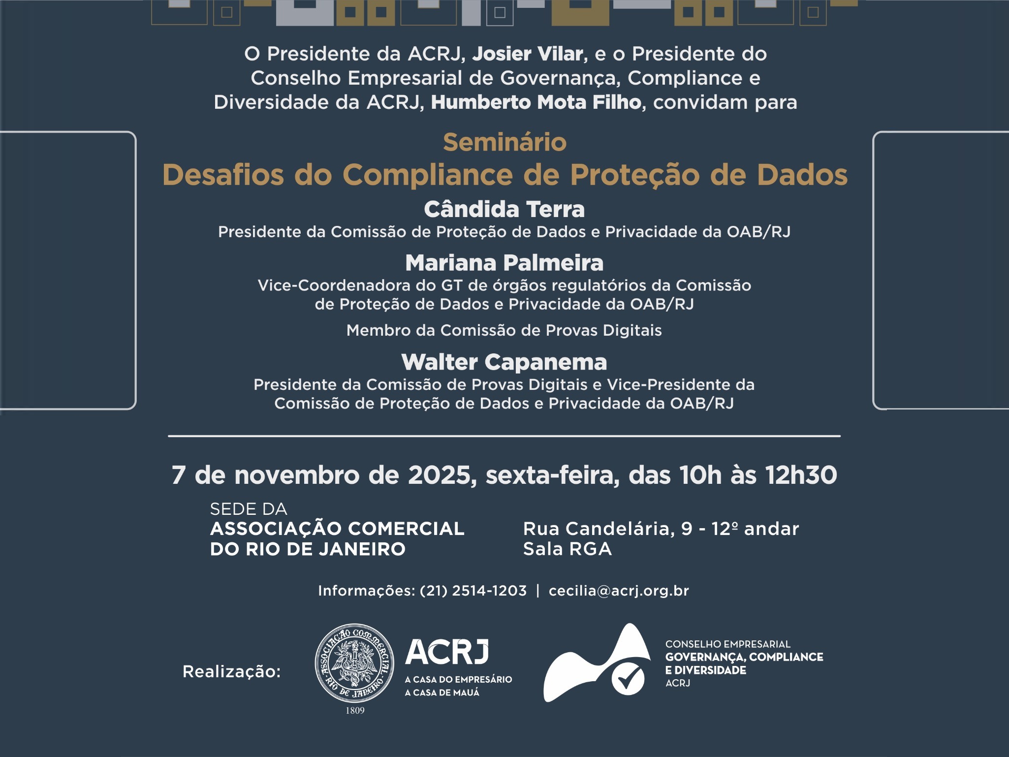 A proteção de dados pessoais será tema de mais um encontro promovido pela ACRJ, através de seu Conselho Empresarial de Governança, Compliance e Diversidade, da