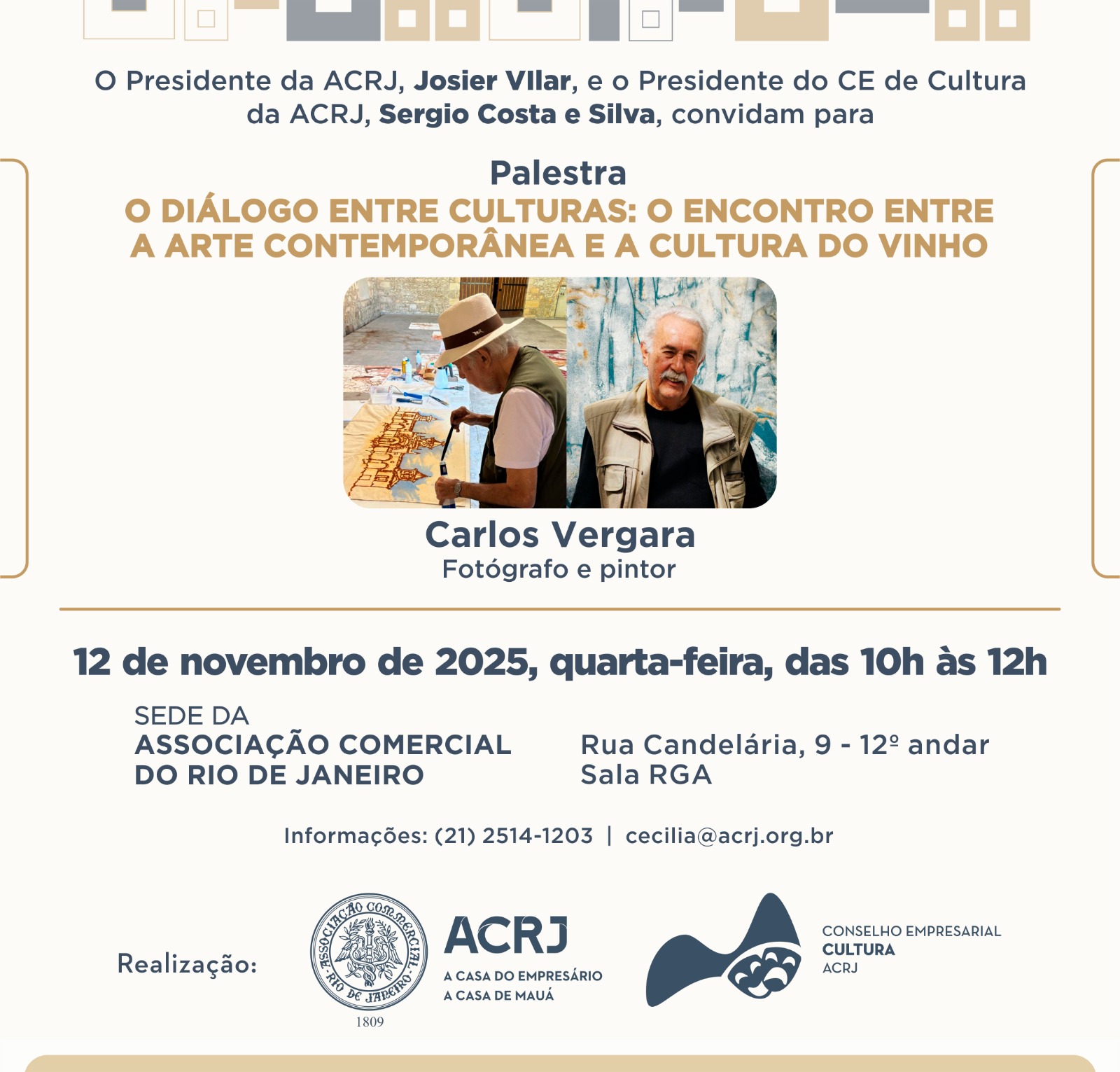 A ACRJ recebe, nesta 4ª feira (12/11), o fotógrafo e pintor Carlos Vergara, que vai participara da reunião mensal do Conselho Empresarial de Cultura. Ele