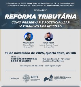 O Conselho Empresarial de Desenvolvimento Econômico e Mercado de Capitais da ACRJ promove, dia 19 de novembro, às 10h, o seminário “Reforma Tributária – como…