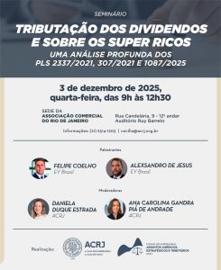 O Conselho Empresarial de Assuntos Jurídicos e Tributários da ACRJ promove, dia 3 de dezembro, a partir das 9h, o seminário “Tributação dos dividendos e…