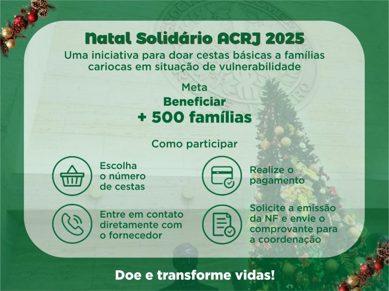🤝 Faça parte desse movimento! Vamos transformar o Natal de centenas de famílias cariocas! A ACRJ está promovendo a campanha Natal Solidário ACRJ 2025 para